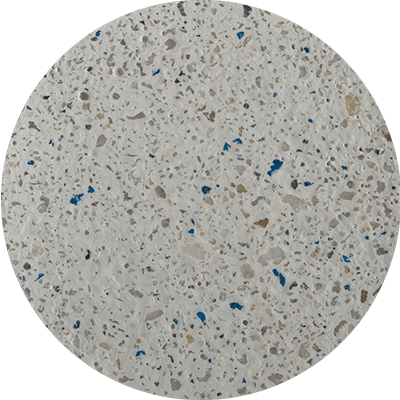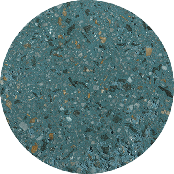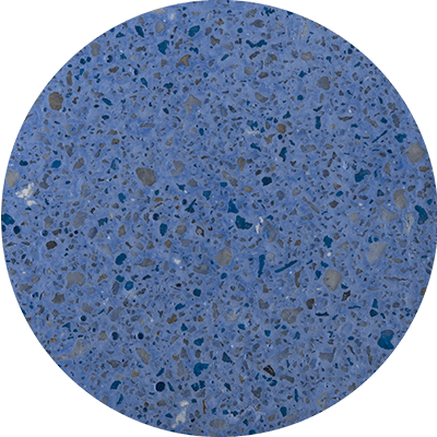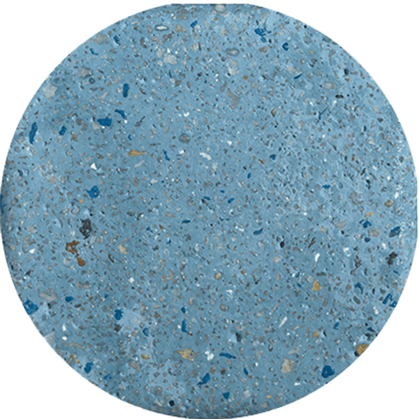 Color Azul Caribe y Azul Caribe Cristales; microconcreto con agregados expuestos en cuarzo de alta resistencia.