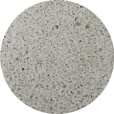 Color Blanco y Blanco Cristales; microconcreto con agregados expuestos en cuarzo de alta resistencia.