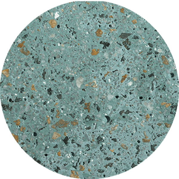 Color Turquesa: microconcreto con agregados expuestos en cuarzo de alta resistencia.