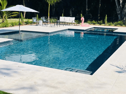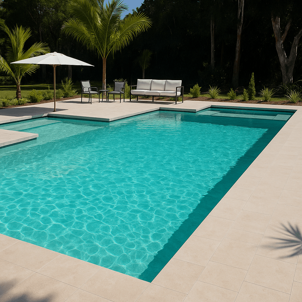 Granito Azul refleja la fuerza de la piedra y la calma del agua. Inspirado en los tonos de la roca húmeda, su color mezcla el gris azulado con destellos turquesa que se intensifican bajo el sol, generan una sensación de solidez y elegancia. Ideal para diseños que buscan naturalidad, solidez y armonía con materiales pétreos o paisajes montañosos, perfecto para piscinas de estilo contemporáneo y espacios de alto diseño.