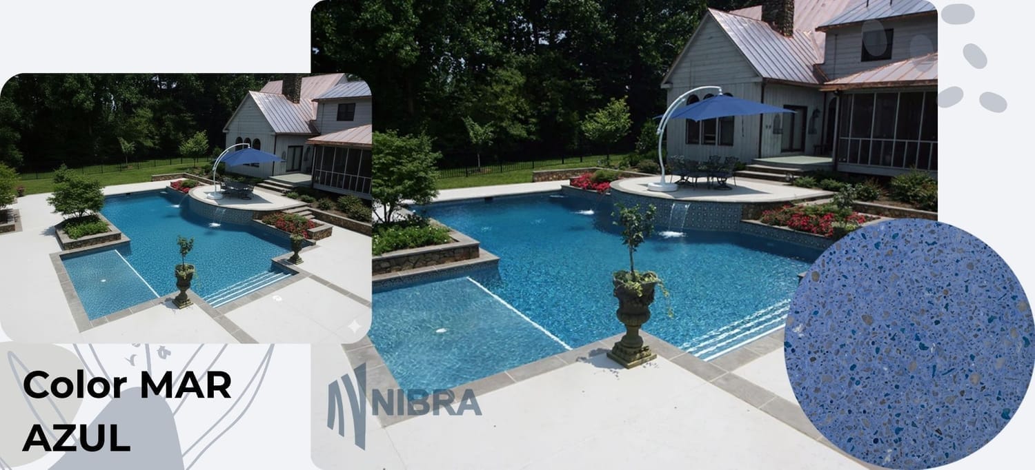 Mar Azul es el equilibrio perfecto entre serenidad y profundidad. Su tono medio, con matices que oscilan entre el azul cielo y el océano al atardecer, invita al descanso y la contemplación. Refleja el arte de combinar la naturaleza con la arquitectura, logrando que cada piscina se sienta como una extensión del mar.